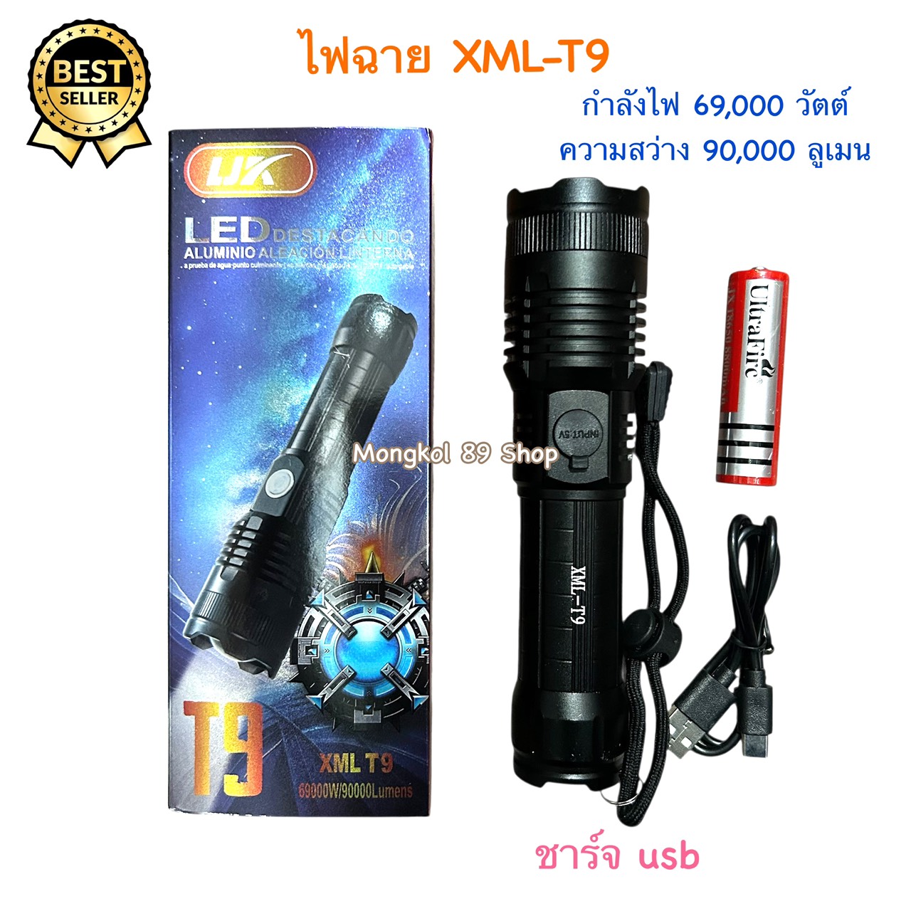 • ไฟฉายรุ่นนี้เป็นไฟฉาย Ultrafire 69,000 วัตต์